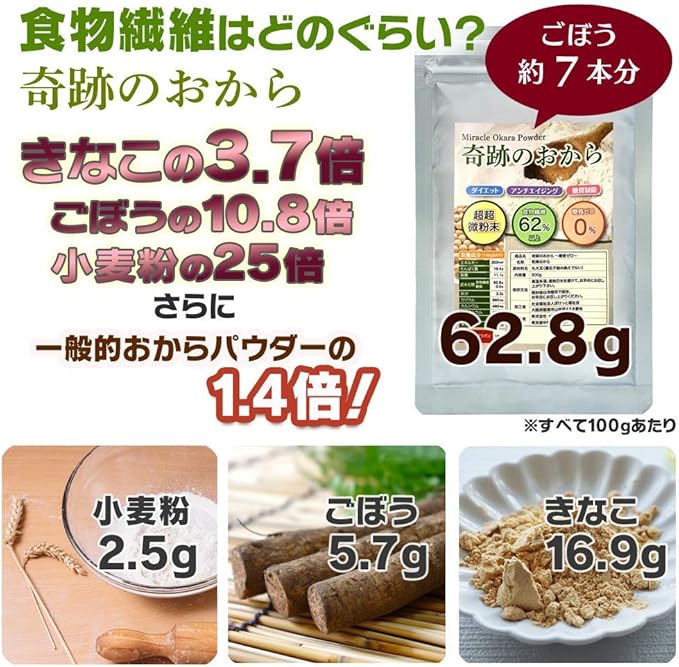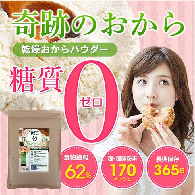 糖質ゼロ おからパウダー 無添加 微粉末 170メッシュ で 飲める お料理にも 奇跡のおから 国内加工 1袋