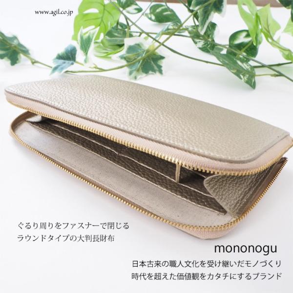 mononogu もののぐ ラウンドファスナー 牛革シボ シュリンクレザー長財布 シャンパンゴールド レディース 送料無料