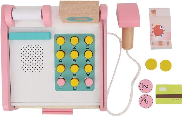 amazon ふり遊びおもちゃ 木製 レジ キャッシュレジスター スーパーマーケット ふり遊びゲーム用 ままごと ごっこ遊び お店屋さん おもちゃ