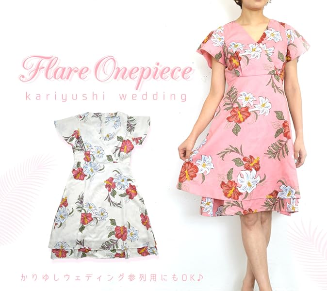 amazon かりゆしワンピース シルエットフラワー ボートネック リゾートウェディング かりゆし結婚式 ピンク ワンピース チュニック 通販