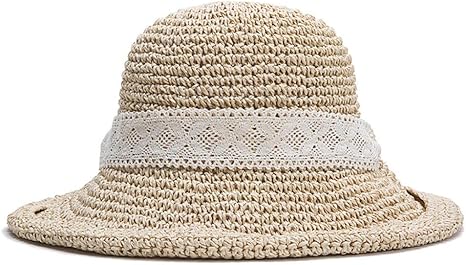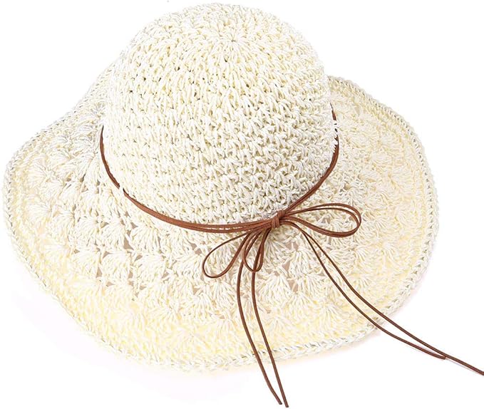 amazon yiyilai 可愛い つば広帽子 レディース ペーパーストローハット 日焼け防止 女優帽 麦わら帽子 顎ひも付き ビーチ 帽子 クリーム ハット 通販