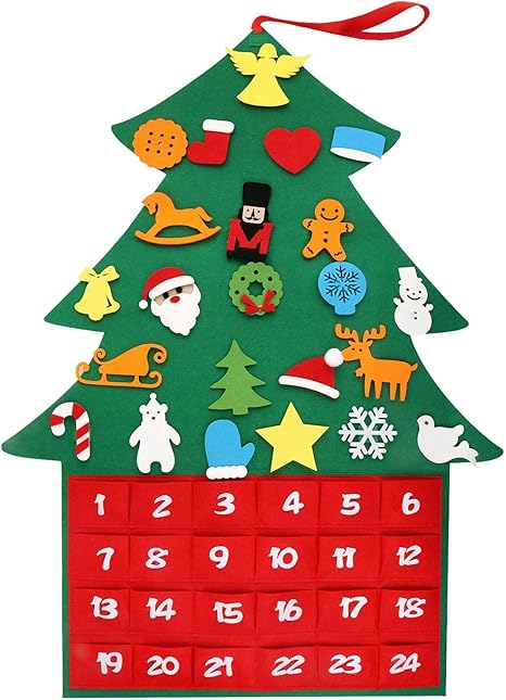 rooya babyクリスマスツリー 壁掛け アドベントカレンダー 布絵本 クリスマス 飾り クリスマスカレンダー アドベントカレンダー デコレーション フェルトクリスマス ツリー diy 手作り クリスマスツリータペストリー 取り外し可能 部屋 壁 玄関 24個入りセット