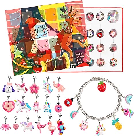 lorfancy 24 days christmas advent calendar 2020 christmas countdown calendar 24 charms with bracelet necklace set fashion jewelry for kids