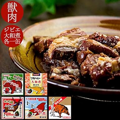 獣肉 特別セット 熊肉 エゾシカ肉 イノシシ肉 トド肉 アザラシ肉 大和煮 各70g クマ 蝦夷鹿 猪 とど 海豹のジビエ くま しか いのしし トド あざらし しょうゆ味みそ味 北海道限定商品有 醤油 味噌大和煮 ご当地缶詰 貴重な獣肉 出没注意 鳥獣肉