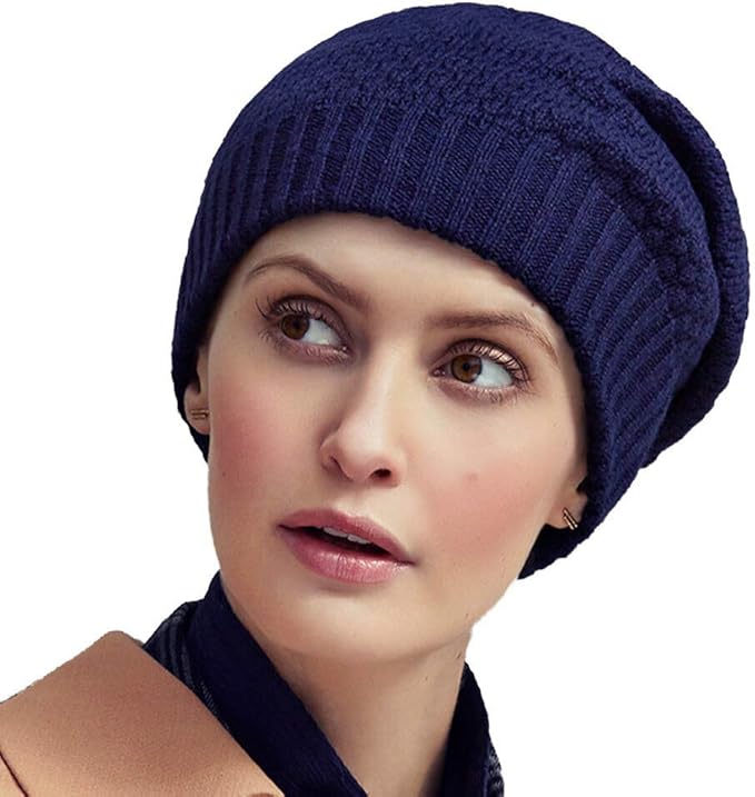 amazon 抗がん剤治療 医療用帽子 ケア帽子 スカーフ風ケアキャップ ネイビーニット キャップ 通販