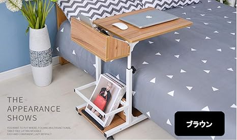 amazon lr store 昇降式サイドテーブル 高さ調節可能 机 デスク サイドテーブル ベッドサイドテーブル 可移動デスク キャスター付き 収納棚 ブラウン サイドテーブル オンライン通販