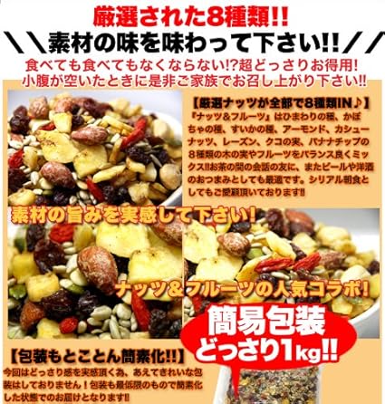 amazon 7種ナッツ ドライフルーツミックス1kg 赤字セール 世界3大ナッツ入り 素焼き アーモンド 素焼き カシューナッツ 素焼き ヘーゼルナッツ くるみ マカダミア レーズン クランベリー 産地直輸入 便利なチャック付き袋 daily nuts fruits デイリー