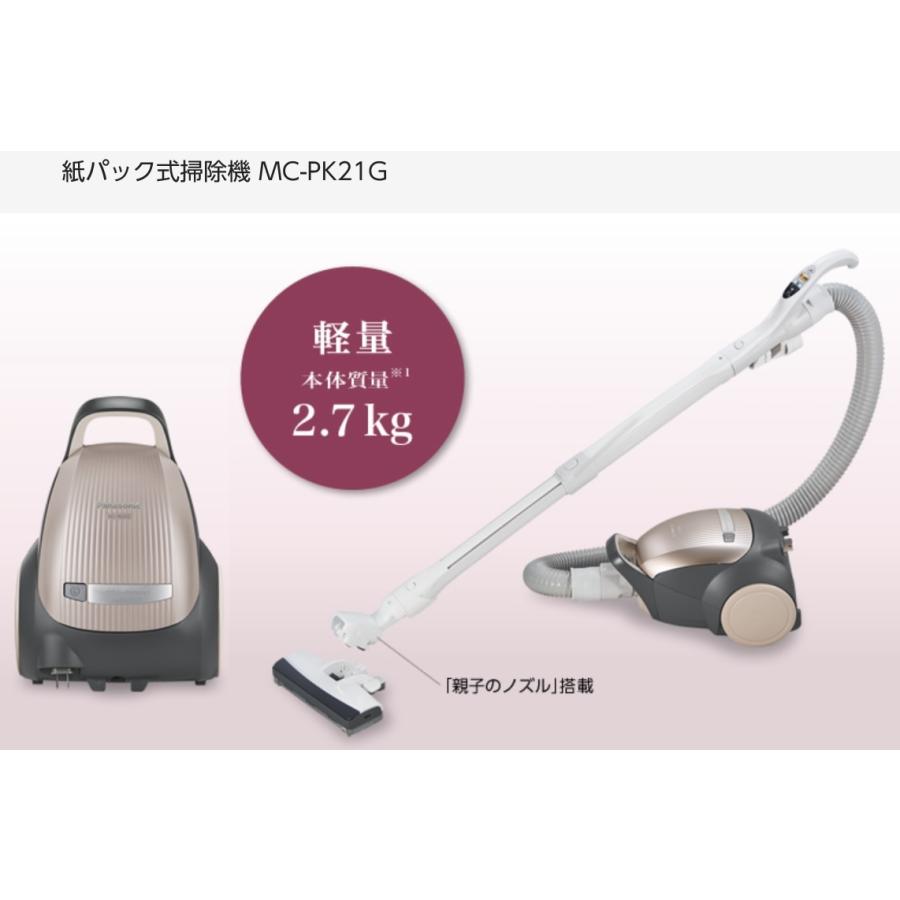 パナソニック 紙パック式掃除機 小型軽量パワーノズル 親子ノズル 軽量 本体2 7kg シャンパンゴールド mc pk21g n
