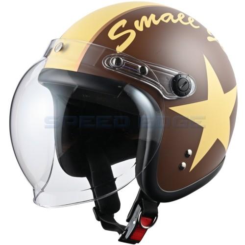 レディース キッズ スモールジェットヘルメット バブルシールド付 マットブラウン アイボリー54cm 57cm未満