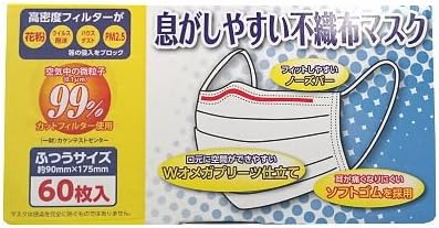 息がしやすい不織布マスク箱入り60枚レギュラーサイズ