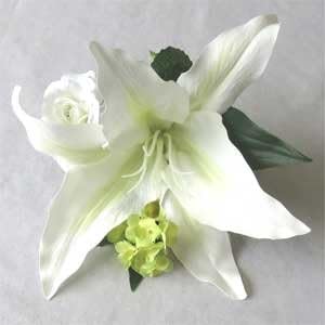 amazon ウエディングブーケ ブライダル 造花 ブートニアユリ 白ミニバラ 造花 オンライン通販