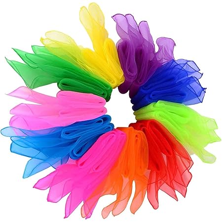 lihao リトミック ダンススカーフ 四角 60x60 オーガンジー カラーシフォン 子ども 幼稚園 レクリエーション 12色24枚セット