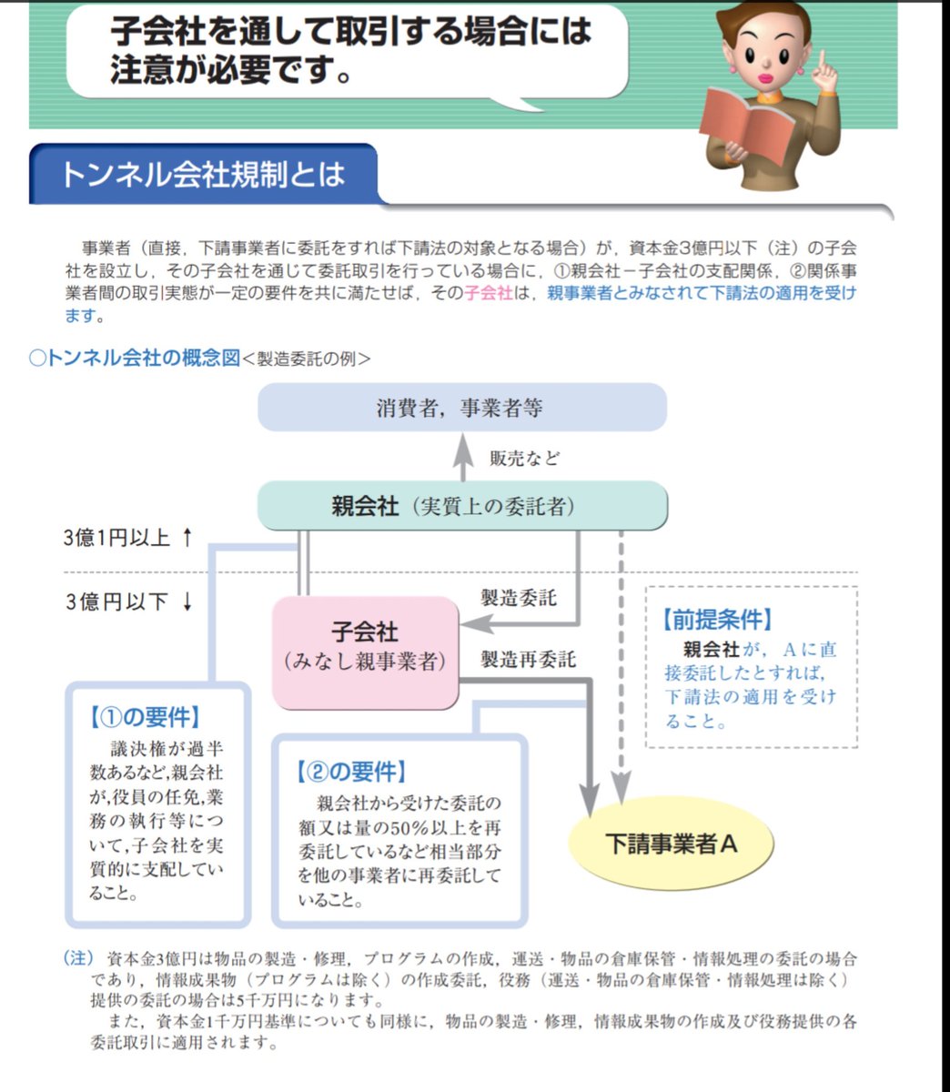 公正取引委員会の判断は 吉本さん下請法違反じゃない 資本金10百万以下だから対象外じゃない 親会社のホールディングス 旧興業 は資本金1億だからトンネル会社規制入って対象じゃない togetter
