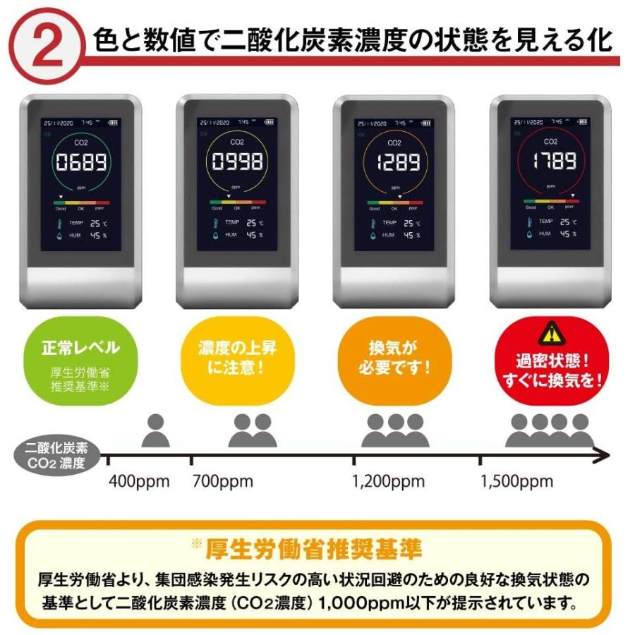 二酸化炭素 co2 濃度の測定器 酸素が薄いとアラートが鳴ります