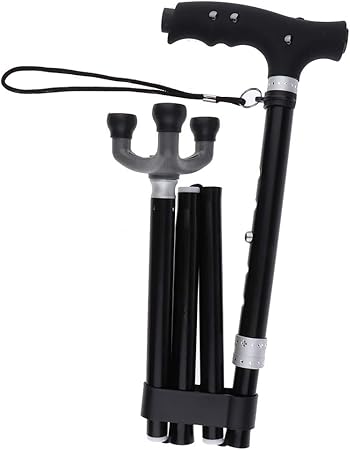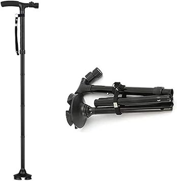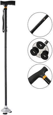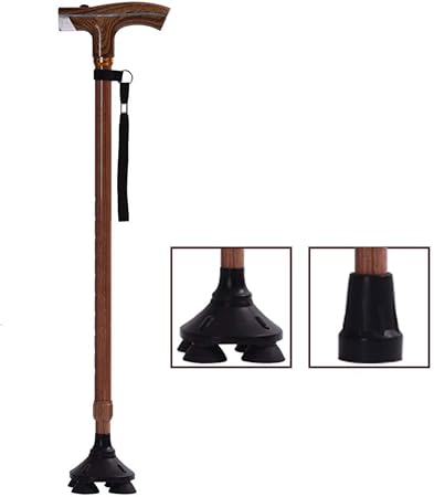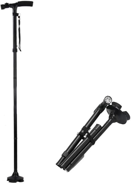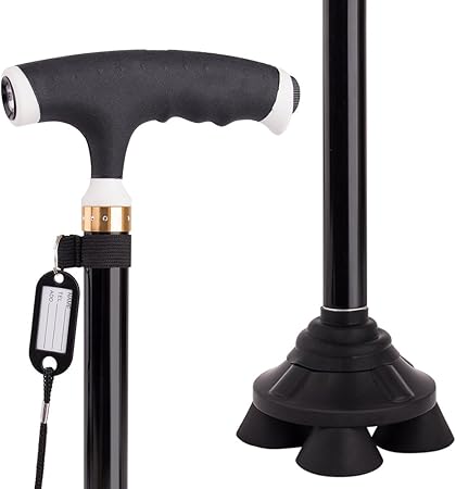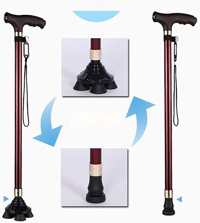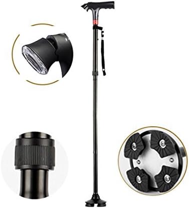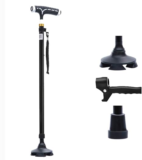 amazon mldeng軽量 つえ 伸縮型 四点杖 ledライト付き アルミ 滑り止め シンプル 一本杖 高さ調整可能 プレゼント 敬老の日 介護用 ストラップ付 福祉用具 老人 歩行補助 mldeng 一本杖