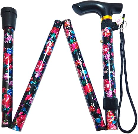 amazon co jp actopp 杖 ステッキ 折りたたみ 軽量 おしゃれ 木製グリップ 伸縮 介護 70 80cm 5段階調節 アルミステッキ 女性 花柄 収納袋 替えゴム付き プレゼント 敬老の日 スポーツ アウトドア