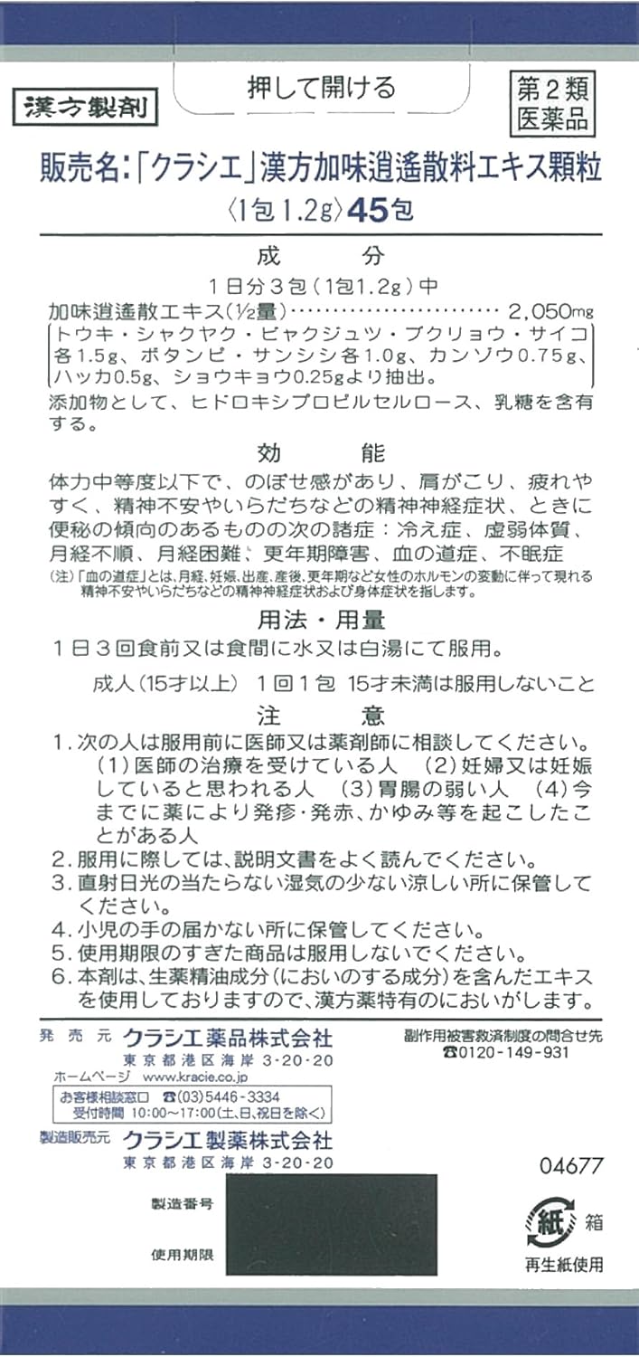 amazon 第2類医薬品 クラシエ 漢方加味逍遙散料エキス顆粒 45包 クラシエ漢方 風邪薬