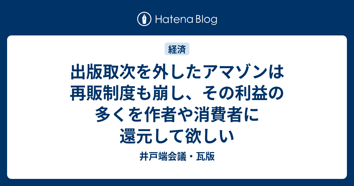 出版取次を外したアマゾンは再販制度も崩し その利益の多くを作者や消費者に還元して欲しい 井戸端会議 瓦版