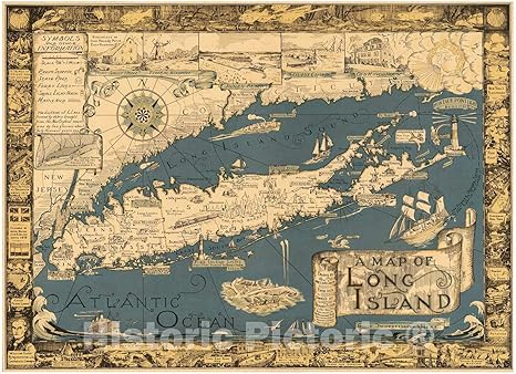 amazon co jp 歴史的な地図 ロングアイランドの地図 コートランド スミスが1933年リチャード フォスターによって編集したデータから描かれています ヴィンテージウォールアート 44インチ x 33インチ generic