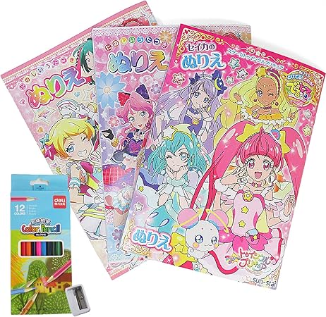 ぬり絵 3冊 塗り絵 色鉛筆 鉛筆削り セット ぬりえ こども 子供 プリキュア アイカツ