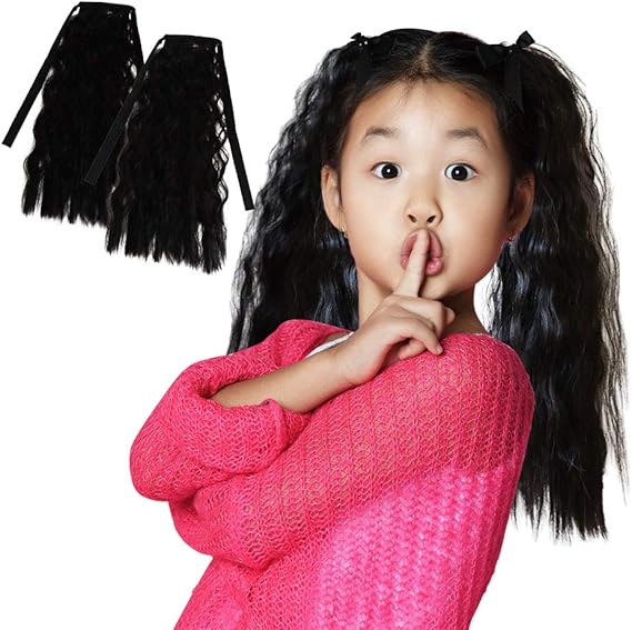 amazon micopuella 子供用ウィッグ ツインテール ポニーテール リボン付き 部分ウィッグ 付け毛 ピンク ヘアアクセサリー おもちゃ