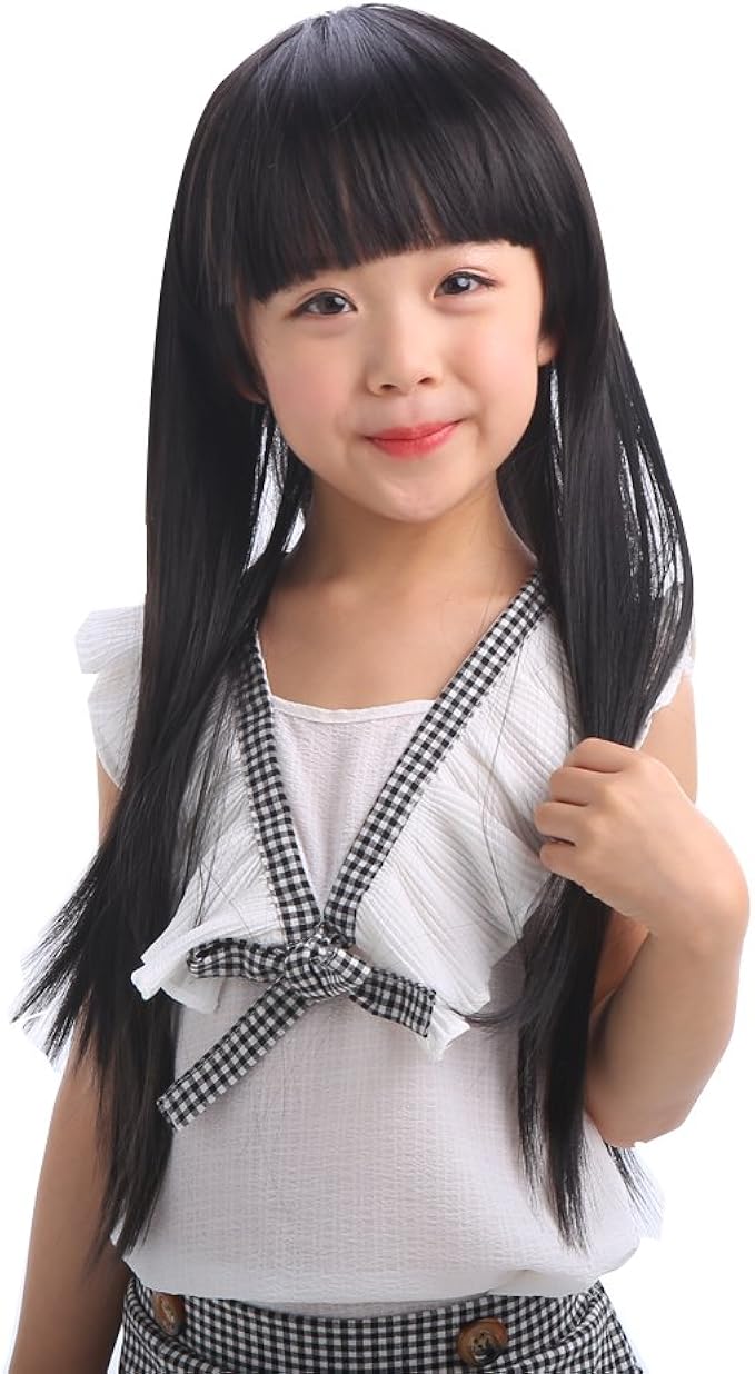 kidsウイッグ キッズ向け カツラ セミロング ストレート ぱっつん前髪 ガールズ 子供 オールフルウィッグ ふわふわ 可愛い girl wig 軽量 仮装 七五三 発表会 誕生会 つけ毛 仮装 お宮参り ネット付