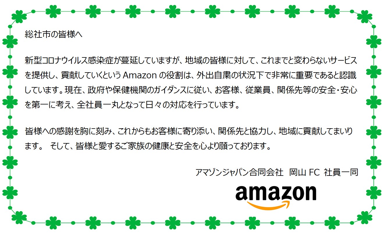 総社市社会福祉協議会 on twitter みんなの声 想いをつなぐプロジェクト レポート 総社市ボランティアセンターでは 4 30から本プロジェクトを実施しております 本日は アマゾンジャパン合同会社 岡山fc 社員一同 様 天理教岡山教区 様から心