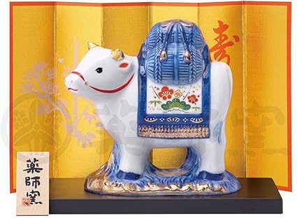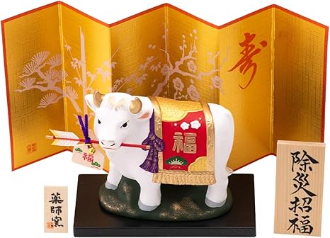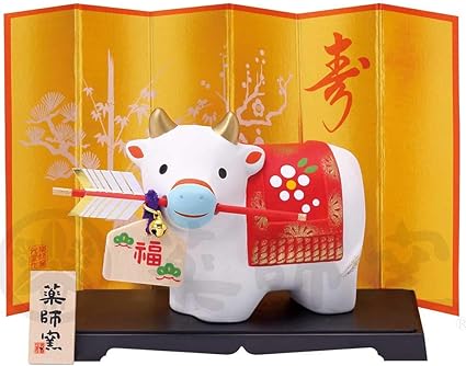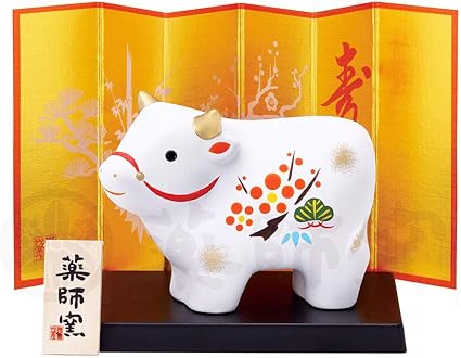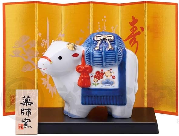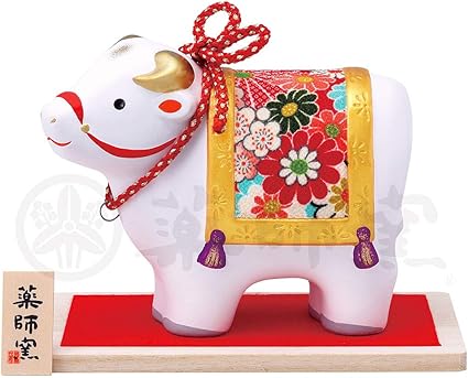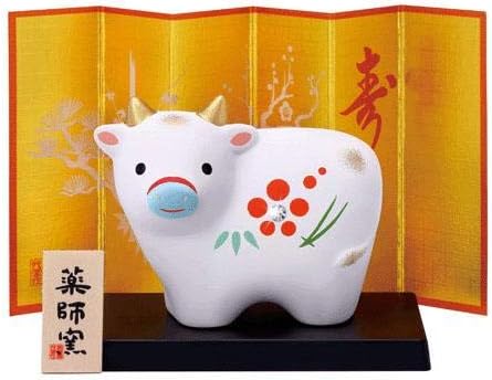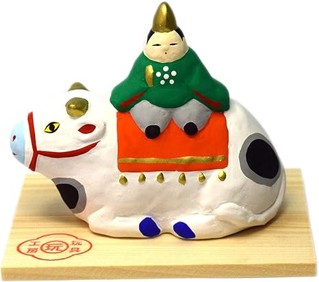 瀬戸陶芸社 干支 置物 2021年 縁起 開運 丑乗天神 玩具工房 日本製 白 高さ9 0 横11 2 奥行5 2cm 板有り st g21 11