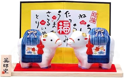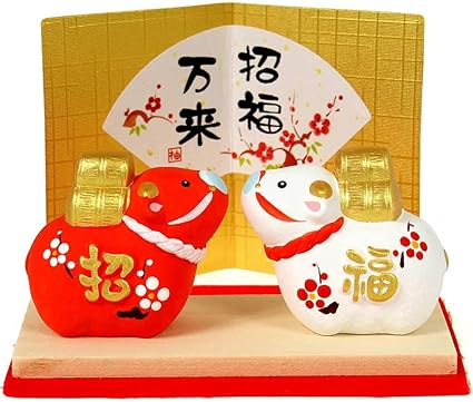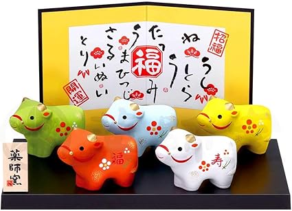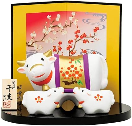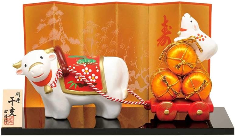 amazon 干支 置物 丑 牛 うし 錦彩招福十二支飾り 2021年 粗品 販促 景品 縁起 町内会 敬老会 神社 寺社 年末 年始 家庭用 業務用 ノーブランド品 インテリア