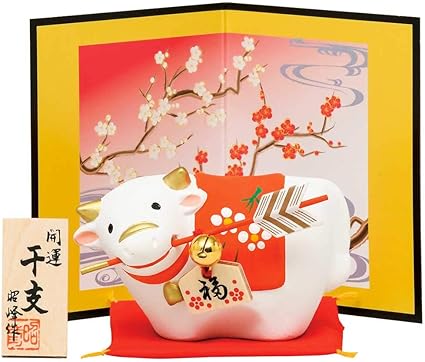 amazon 干支 置物 丑 牛 うし 錦彩招福丑 破魔矢付 2021年 粗品 販促 景品 縁起 町内会 敬老会 神社 寺社 年末 年始 家庭用 業務用 ノーブランド品 インテリア 通販