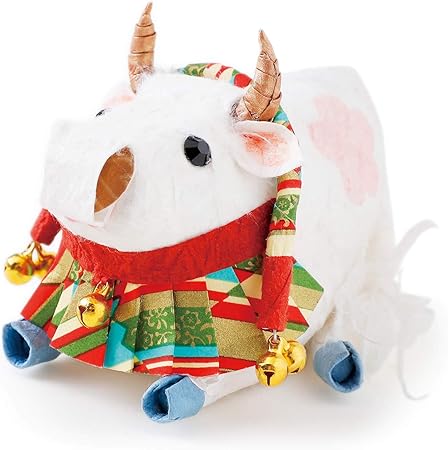 amazon 迎春 お正月 干支 置物 丑年の縁起干支飾り 福丸うし 縮緬 丑 座布団付 2021年 牛 うし ウシ お正月飾り 干支かざり 正月飾り おもちゃ