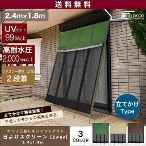 fieldoor ぱぱっと日よけスクリーン 1 8m 2 4m ステンレス ブラウンメッシュ ファスナー巻き上げ式 2段幕 高耐水加工 シルバーコーティング uvカット