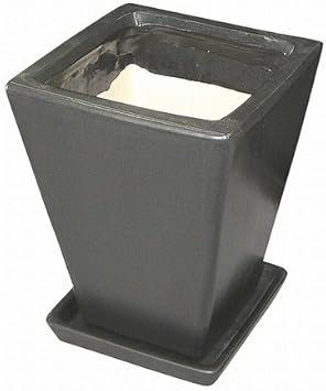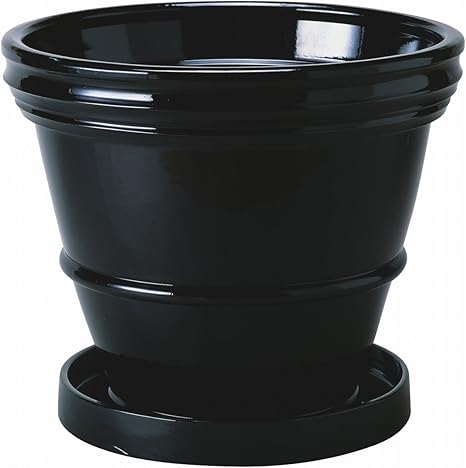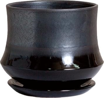 amazon 植木鉢 陶器鉢 光沢がある陶器で出来た植木鉢です 受け皿がセット 上品でお手入れ簡単 ブラック トレイ 盆 オンライン通販