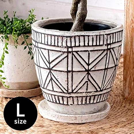 amazon 植木鉢 陶器 白 ベトナム産 5号 受け皿付き 鉢