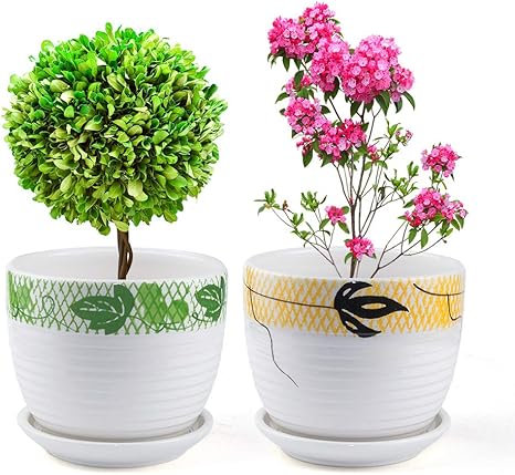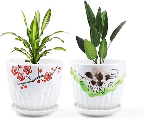 amazon kistustuki 陶器鉢 植木鉢 観葉植物鉢 2点セット 中容量プランター 受け皿付き 排水孔付き花鉢 diy 工具 ガーデン
