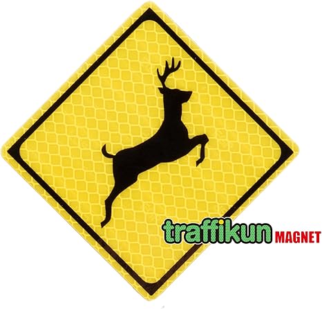 道路標識 ミニチュア マグネット ステッカー 動物注意 シカ