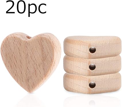 let s make 歯固め 木製ビーズ ハートの形 天然無塗装 20個 ハンドメイド素材 ウッドパーツ おしゃぶりホルダー 歯がためジュエリー 手作り おもちゃ カミカミ 赤ちゃん 出産準備 ベビーギフト