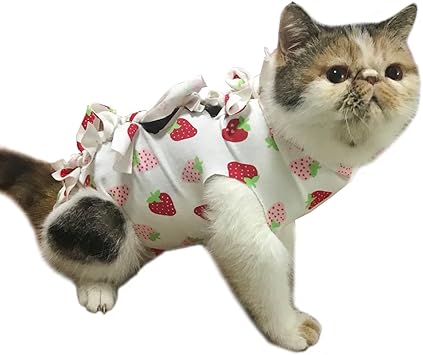 amazon 術後服 猫 犬 術後ウェア 猫用術後服 ヘルスケア 猫の術後服 ペット服 避妊 腹部保護 傷口の保護 皮膚保護 傷舐め 引っ掻き防止 手術用 蝶結び かわいい イチゴ m 2 5 4kg eleoption 術後ウェア 通販