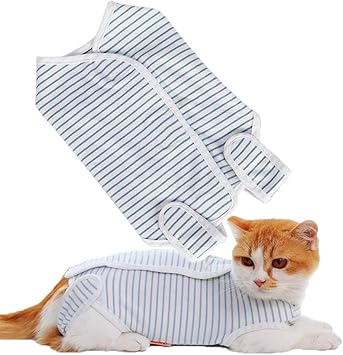 sungroo術後ウェア 猫用 エリザベスカラーに代わる 術後服 柔らかい 傷舐め 不妊手術 傷口保護 避妊 ボーダー s オレンジ