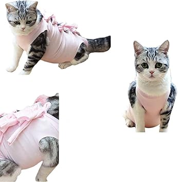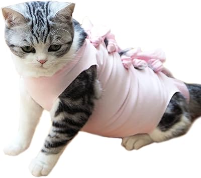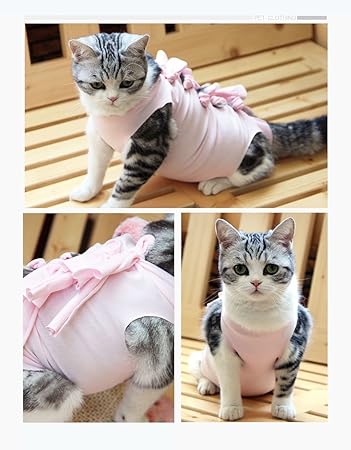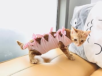 猫 術後服 介護服 避妊 傷口保護 皮膚保護 腹部保護 術後回復 蝶結び かわいい ペット術後服 多色選択 s ピンク