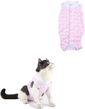 timeterny 猫 術後服 術後ウェア ボタンタイプ 皮膚保護 傷舐め 避妊 傷口の保護 雄 雌兼用 レット s