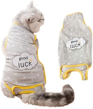 猫 術後服 猫用 術後ウェア ペット避妊手術 傷口の保護 傷舐め防止 エリザベスカラーに代わる 皮膚保護 l グレー