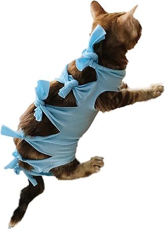 amazon eleoption猫用 術後服 ペット術後服 術後ウェア 皮膚保護 不妊手術 手術用 蝶結び かわいい l 4 6kg ブルー eleoption 服 アクセサリー 通販
