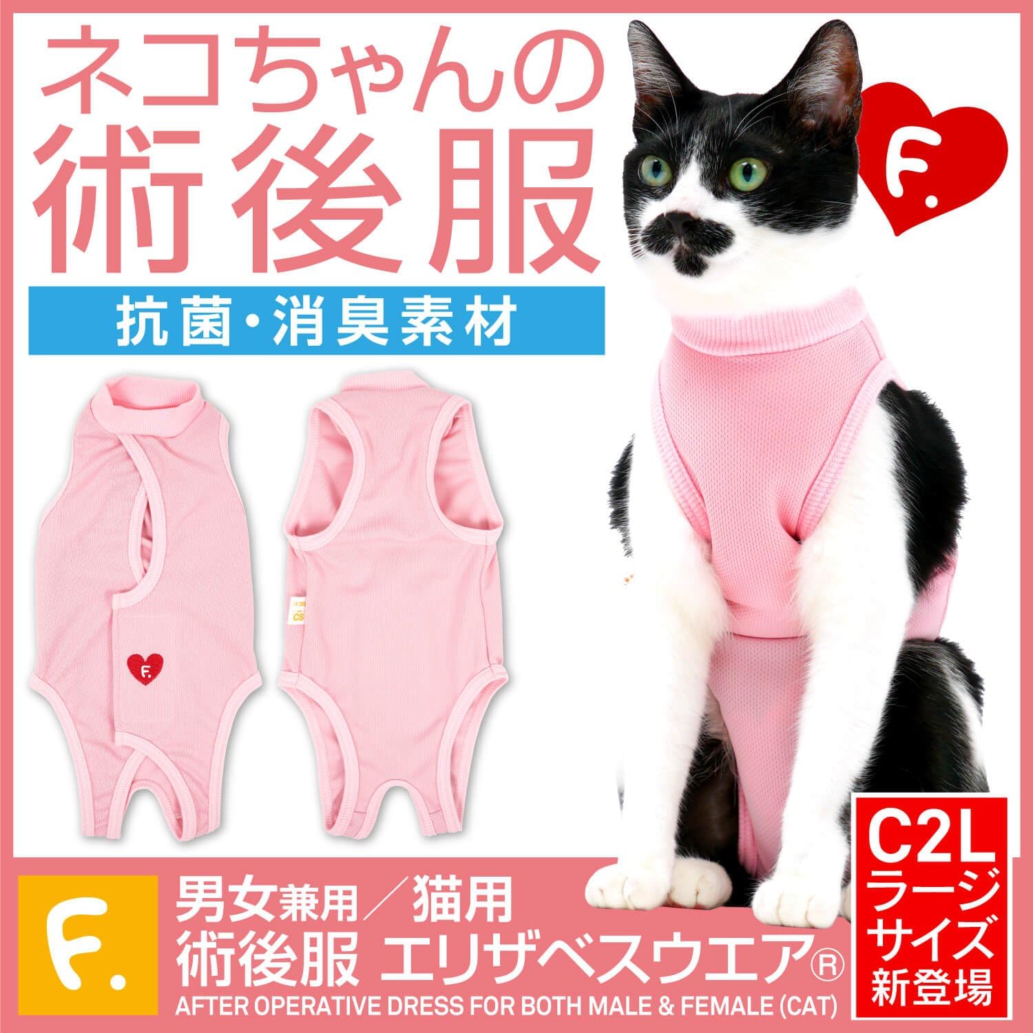 日本製 純正品 術後服 猫用 フルオープン足付き術後服エリザベスウエア 男女兼用 6 ピンク c2l フルオブビガー ネコ 介護 獣医師 共同開発 エリザベスカラー 抗菌 消臭 避妊 手術