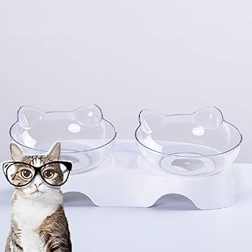 フードボウル 猫 犬 餌入れ ペット用食器 透明皿2個セット 滑り止め台座
