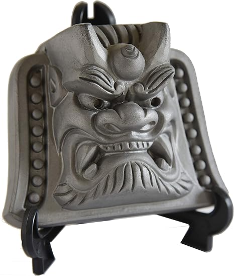 amazon co jp いぶし瓦製 手作り 魔除けの鬼面瓦 卓上サイズ 記念品 贈答品に ホーム キッチン