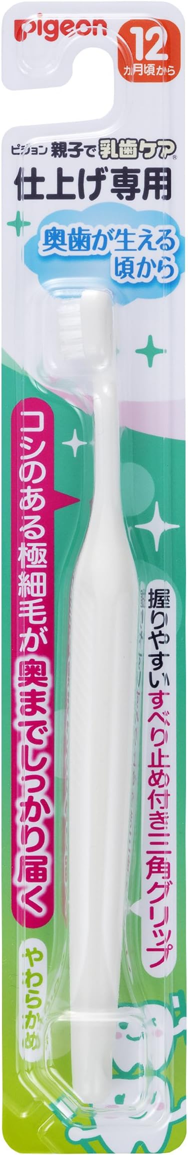 ピジョン pigeon 仕上げ専用歯ブラシ やわらかめ 奥歯が生える頃 12ヵ月 3才頃 から 奥歯まできちんと磨くカタチ