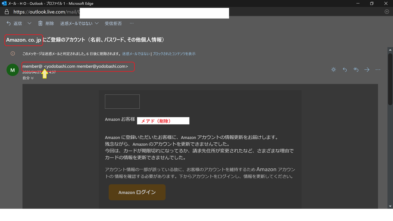 amazon co jp にご登録のアカウント 名前 パスワード その他個人情報 の確認 という件名の詐欺メールを徹底紹介 s design labo