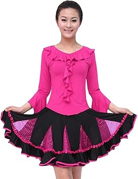 amazon ラテンダンス ドレス ラテンダンス衣装 ワンピース レディース 社交ダンスドレス モダン ワルツドレスフラメンコ ルンバ 長袖 練習着 競技用 発表会用 演出服 ローズ l ywnz eight 社交ダンス