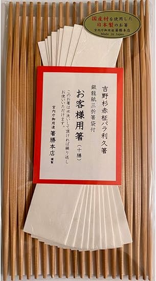 宮内庁御用達 箸勝 お客様用箸 吉野杉 赤柾バラ 利休箸 銀龍紙箸袋付 10膳 26cm 純国産 高級 割りばし